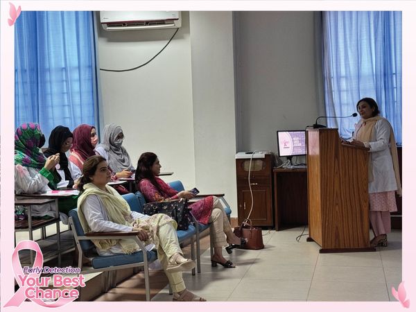 A session on breast cancer awareness was held at Khyber College of Dentistry, Peshawar on the 30th of October, 2023. Headed by Dr. Tarbia Hamid, Consultant General and Breast Surgeon, and Dr. Zara Mohammad, Consultant Family Medicine at NWGH, the event focused on promoting education, enhancing awareness on self-examination, and stressing the importance of early detection. The session engaged attendees in comprehensive discussions and demonstrations, empowering individuals with vital knowledge about breast health and proactive measures for early diagnosis.