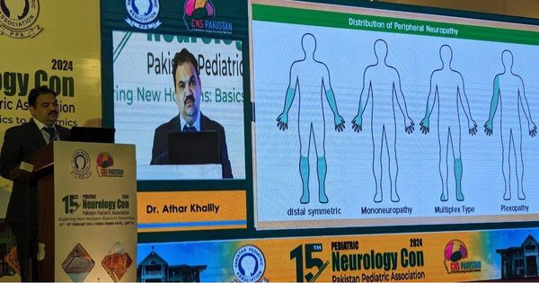 Dr. Athar Khalily, Consultant in Paediatric Neurology, showcased groundbreaking insights at the 15th Paediatric Neurology Conference in Quetta. His presentation delved into the intricate realm of Neuropathies in children, aligning with the conference theme, “Exploring New Horizons: Basics to Genomics.” The event, organised by the Paediatric Neurology Group of the Pakistan Paediatric Association, facilitated a platform for advancing knowledge in this specialised field. Dr. Khalily’s contribution exemplified the commitment to pushing the boundaries of paediatric neurology and fostering collaboration among experts. The conference, held at Serena Hotel, Quetta, proved instrumental in enhancing understanding and fostering progress in paediatric neurology.