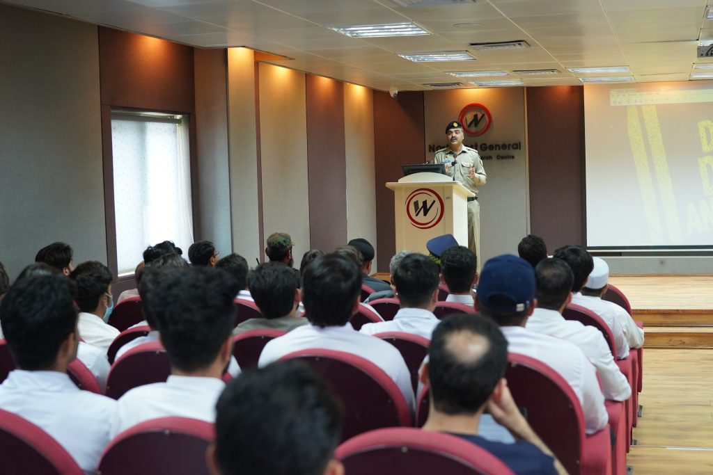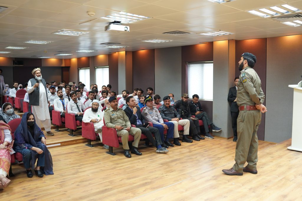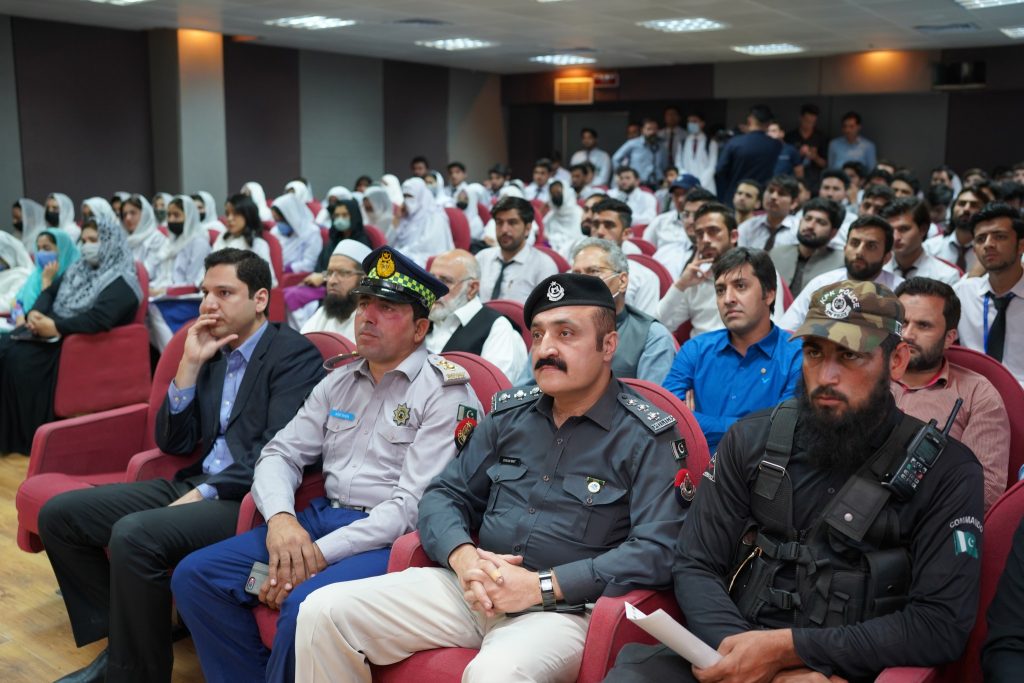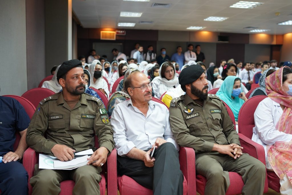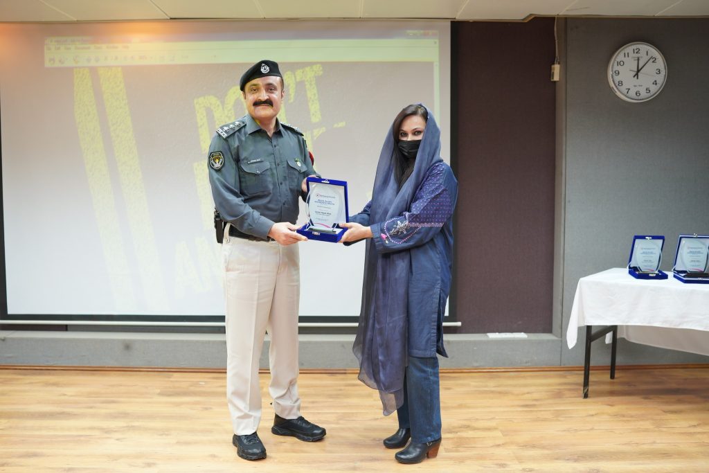 Mr. Ehsaan Marwat, DSP Education, City Traffic Police Peshawar graced the event as Chief Guest while Dr. Muhammad Tariq Barki, Consultant Neurosurgeon, NWGH moderated the event. The event was also attended by Mr. Basir Ilyas, Inspector/Senior Patrol Officer, M-1 Motorway, Mr. Saadat Ullah, Emergency Officer, Rescue 1122 and Mr. Asif Raza, Incharge Education, City Traffic Police Peshawar. The Chief Guest along with other esteemed guests also spoke at the event. Leaflets regarding awareness of and prevention against brain injury were distributed among the audience and the traffic police personnel to be further distributed among the general public.