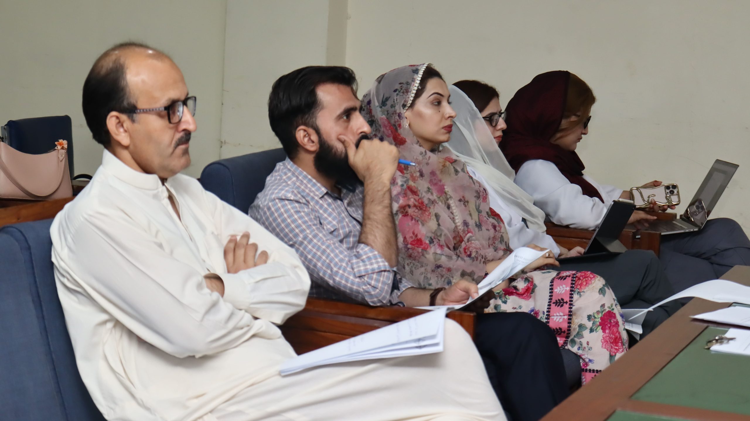 Research Proposal Defense Session for DPT Students at NWIHS The Department of Physical Therapy (DPT) at Northwest Institute of Health Sciences recently organized a valuable session on research proposal defense for 9th-semester students. Led by esteemed faculty member Dr. Shafiq ur Rehman, PhD, Head of Research Board-NWIHS, the session aimed to equip students with essential knowledge and skills for selecting a suitable research title. A panel of experts, comprising Dr. Kamran Alam (Bio-Statistician), Dr. Muhammad Ilyas (PhD in MLT), Dr. Uzair Ahmad (HOD/AP – DPT), Dr. Aroosha (PT), Mr. Aqib, and Miss Safura, ensured a comprehensive evaluation of the proposals.