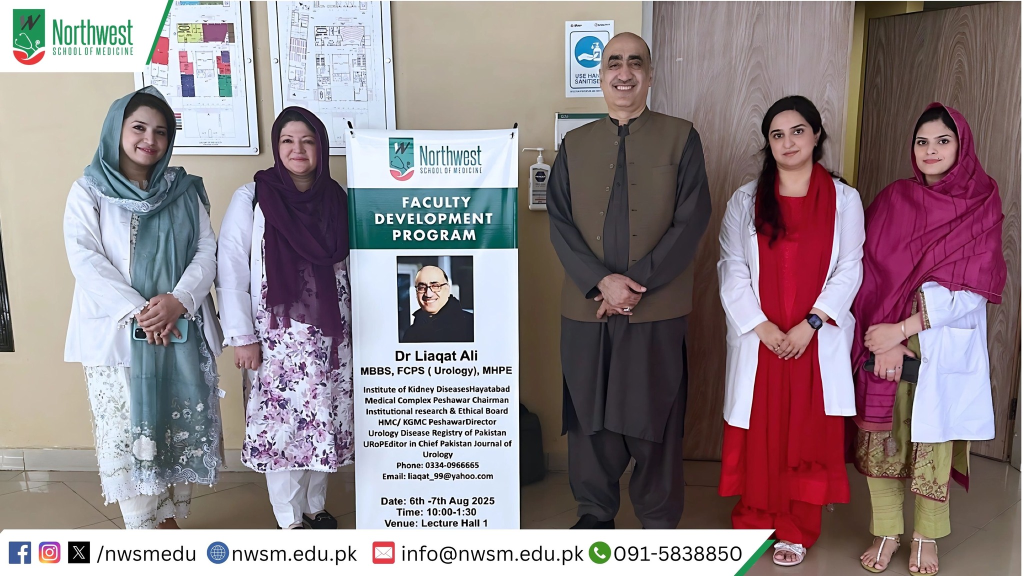 The session was led by the resource person, Prof. Dr. Liaqat Ali from Hayatabad Medical Complex, on August 6, 2025, at Lecture Hall 1. The Principal of Northwest School of Medicine, Prof. Dr. Abid Hussain, along with faculty members from NWSM and Northwest Institute of Health Sciences, actively participated in a hands-on workshop, enhancing their teaching skills and promoting excellence in medical education.